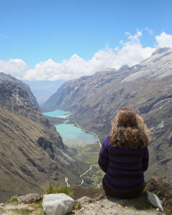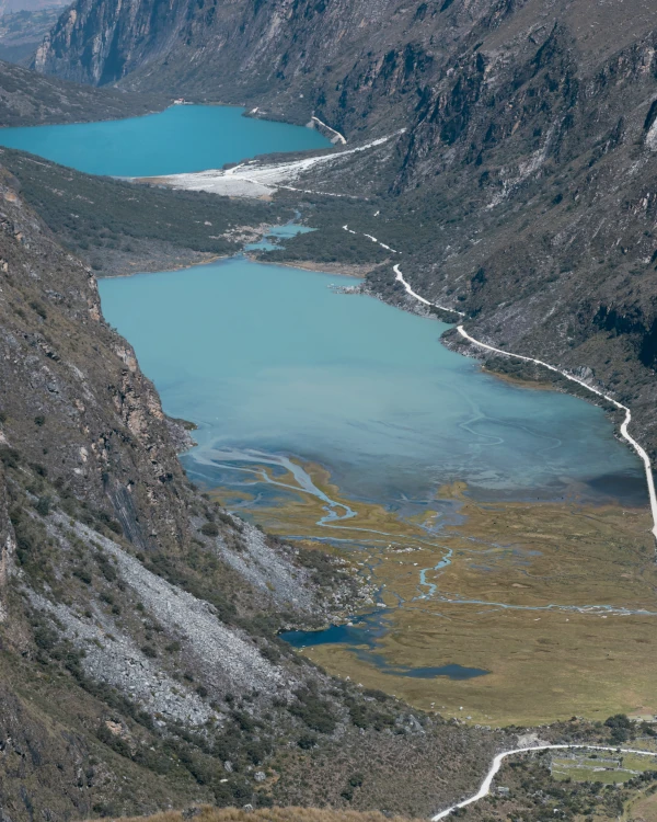 Continuando la ruta, llegamos al Portachuelo de Llanganuco, uno de los miradores más impactantes de todo el Parque Nacional Huascarán. Desde aquí se observan las lagunas Chinancocha y Orconcocha con sus colores intensos y el marco de picos nevados que parecen irreales. Luego bajamos a las lagunas para disfrutarlas de cerca, tomar fotos y respirar un aire puro como pocos.
