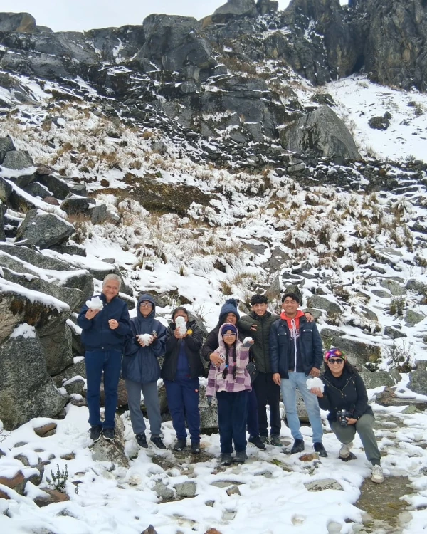 El segundo día empieza temprano 5:30 a.m rumbo al distrito de Yanama, donde el amanecer ilumina la Cordillera Blanca como si fuera una postal viva. Después de una parada fotográfica y un desayuno andino preparado con productos locales, avanzamos hacia uno de los lugares más especiales del viaje: el Santuario “Solo Dios”, un espacio de profunda paz, rodeado de montañas y silencio.